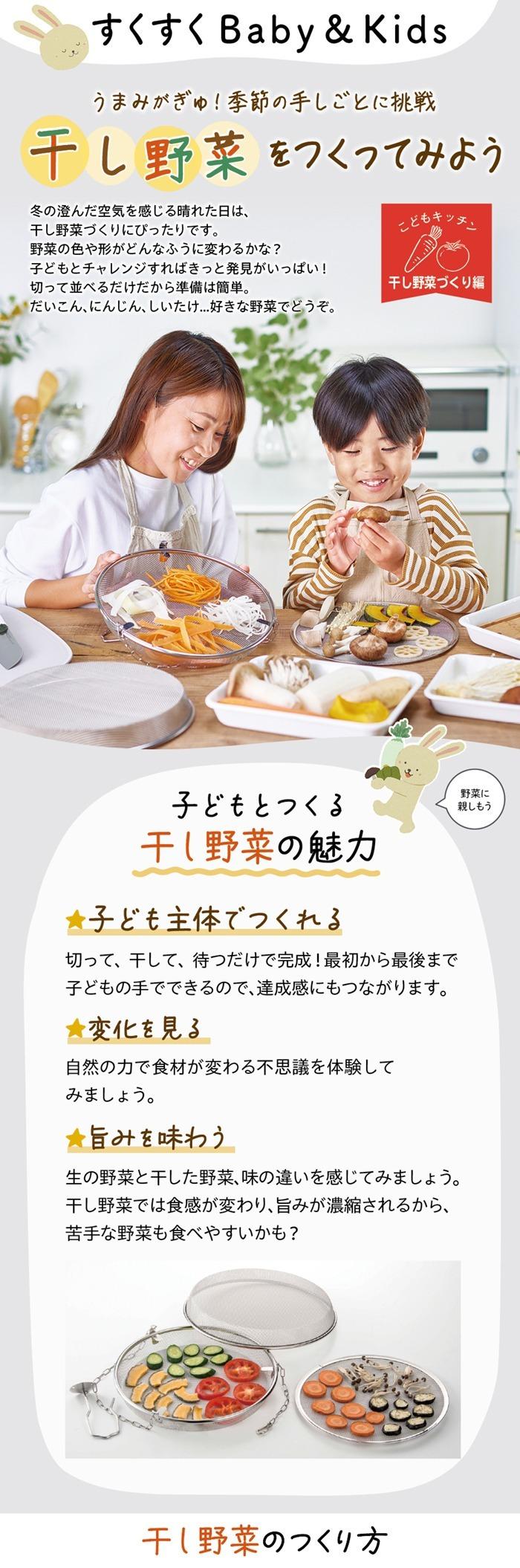 干し野菜やドライフルーツ、魚の干物を作ってみませんか。栄養や旨味が凝縮し、日持ちするので少しずつ使え、毎日の料理に大活躍。清潔に使えるステンレス製です。