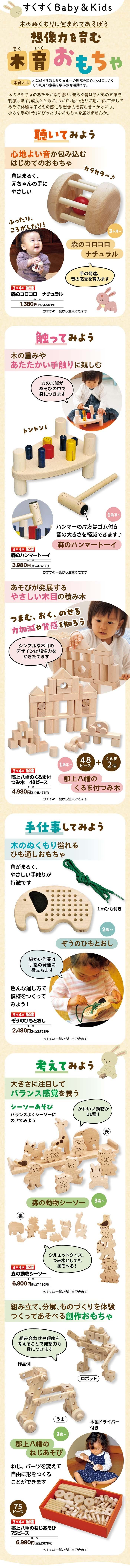 つかんだりふったり転がしたり。自然に手の発育や音への感覚を育みます。赤ちゃんの手にやさしいよう、角はできるだけ丸い仕上げ。