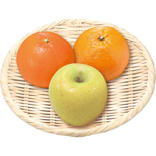 りんご(シナノゴールド)1個、天草オレンジ1個、伊予柑1個
