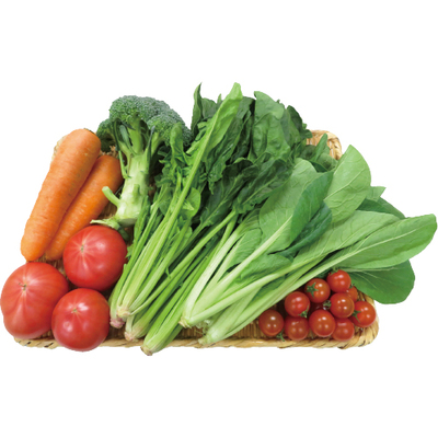 トマト500g、ミニトマト150g、ブロッコリー1個、ほうれん草200g、小松菜200g、人参500g