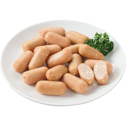 皮なしミニコロウインナーにチーズを入れたお弁当や朝食にピッタリのウインナー。パスタやピザなどの具にも。