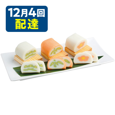 [白松蒲鉾](魚肉(たら(輸入)、ぐち(中国))、卵白(卵を含む、国産)、でん粉(小麦、馬鈴薯(国産))、砂糖、食塩、ほうれん草ペースト(ほうれん草(国産))、みりん、清酒、魚介エキス、かぼちゃペースト(かぼちゃ(国産)))[赤竹蒲鉾](魚肉(たら(輸入)、ぐち(中国))、卵白(卵を含む、国産)、にんじんペースト(にんじん(国産))、でん粉(小麦、馬鈴薯(国産))、砂糖、食塩、ほうれん草ペースト(ほうれん草(国産))、みりん、清酒、魚介エキス、かぼちゃペースト(かぼちゃ(国産)))[白梅蒲鉾](魚肉(たら(輸入)、ぐち(中国))、卵白(卵を含む、国産)、にんじんペースト(にんじん(国産))、でん粉(小麦、馬鈴薯(国産))、砂糖、食塩、みりん、清酒、魚介エキス、かぼちゃペースト(かぼちゃ(国産)))