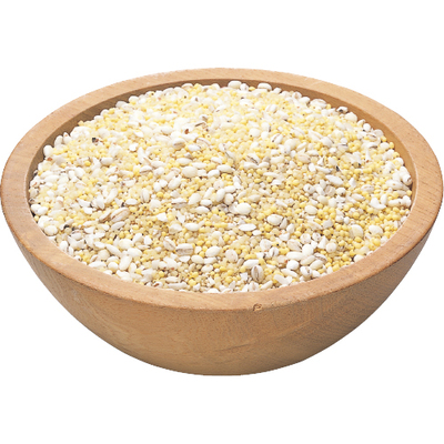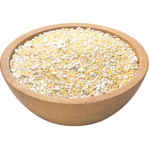 国産のひえ・はとむぎ・大麦・あわ・アマランサス、国産きびを配合しています。白米1合に大さじ1杯が標準量です。