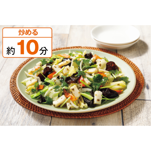 野菜を炒め、イカオイル煮、きくらげ水煮、パクチーを加え、添付のパクチーソースで炒め合わせます。イカは高たんぱく低脂質。具材のきくらげと野菜から、さまざまなビタミンや不足しがちなミネラル、食物繊維が摂れる一品です。2〜3人分。調理時間:約10分。家庭で用意するもの:なたね油大さじ1。調理法:炒める※使い切りのセットです。レシピ付き。必ず加熱してください。消費期限はお届け日の翌日です。