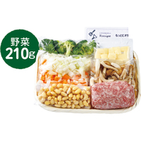 フライパンになたね油を熱し、ひき肉、野菜、大豆などの具材を炒め、水を加えてふたをして煮ます。仕上げに添付のトマトソースとケチャップ、レンジで加熱したブロッコリーを入れてさっと混ぜ合わせてください。腸内環境を整える食物繊維が1日目安の1/3以上の量が摂れます。大豆や野菜、きのこをトマト味の煮込み風に。たんぱく質も豊富です。2〜3人分。調理時間:約15分。家庭で用意するもの:なたね油大さじ1、トマトケチャップ大さじ2、水150ml、粉チーズお好みで※使い切りのセットです。レシピ付き。必ず加熱してください。消費期限はお届け日の翌日です。