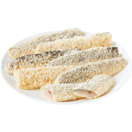 国内で水揚げされたかますを三枚におろし提携先のパン粉で衣付けしました。冷凍のまま揚げ焼きできます。下味をつけていないのでソースやタルタルソースがよく合います。1袋に約7〜10枚入り。