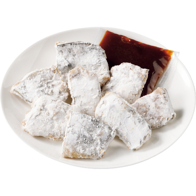 主に三重県で水揚げされる真さばを一口サイズに切り、醤油ベースの調味液で下味をつけて馬鈴薯でん粉で衣付けしました。凍ったままフライパンで揚げ焼きしてさっぱり食べられる添付の甘酢だれをかけてどうぞ。玉ねぎスライスなどの野菜と一緒に食べられるように甘酢だれは多めです。