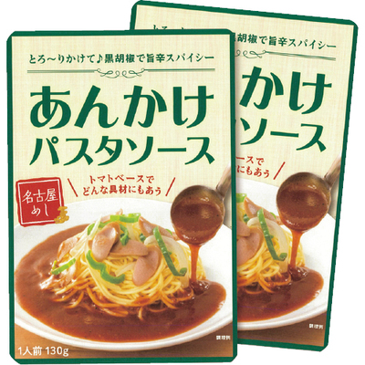 国産のトマトピューレを使用。とろみがあり黒胡椒がきいた味つけ。提携生産者の丸大豆醤油、昆布パウダーを使用しています。あんかけパスタはトマトベースのとろみのあるソースに、お好みの具材をトッピングして食べる、名古屋のご当地パスタ。お好みの具材と太めの麺にあわせて。