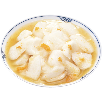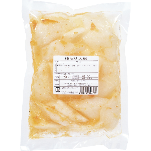 国産の大根を大きめに切り、庄内柿と一緒に漬け込みました。浅漬けタイプ。