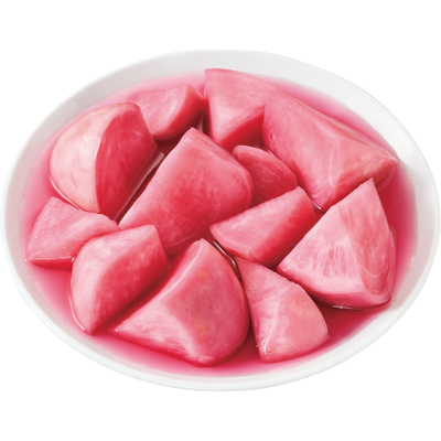 山形県で栽培した赤かぶを米酢・砂糖・真塩の調味液に漬け込みました。食べやすい大きさにカットして味をしみ込みやすくしました。ご飯のお供やお茶請け、酒の肴の他、薄くスライスしてサラダに加えたり、酢飯とあわせてちらし寿司にも。