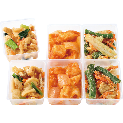 茄子と豚肉が入っている総菜セットは美味しくいただいたのですが、こちらのセットは残念でした。加工食品の野菜のカットに問題があるような気がします。 紙を食べているような感じで食感が悪いです。高齢者が増えて総菜への要望は多い思います。 もう少し味を追求してほしいです。