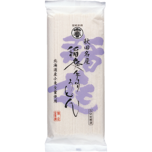 国産小麦100%使用。油を使わない手延べ麺。コシの強さとのどごしのよさは稲庭うどんならでは。