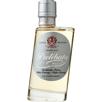 イタリア産の白ぶどうの果汁を使った醸造酢。煮詰めずに5年間熟成させており、かろやかなやさしい酸味と自然な甘みがあります。通常のバルサミコはコクが強く出るためお肉やチーズなど合わせることが多いのに対し、本品はカルパッチョなどの魚介やグリーンサラダなどの冷製野菜によく合います。