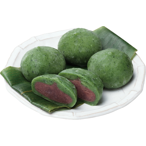 こしあん(小豆(国産)、砂糖、還元水あめ、食塩)、上新粉、砂糖、よもぎ、山芋加工品(還元水あめ、大麦粉、食塩、山芋粉)、植物油脂/アルコール、乳化剤(大豆由来)