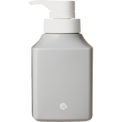 詰替用の空ボトル。樹脂原料の一部にバイオマス由来の原料を使用。内部は洗いやすい形状。液状で出てきます。泡状にはなりません。