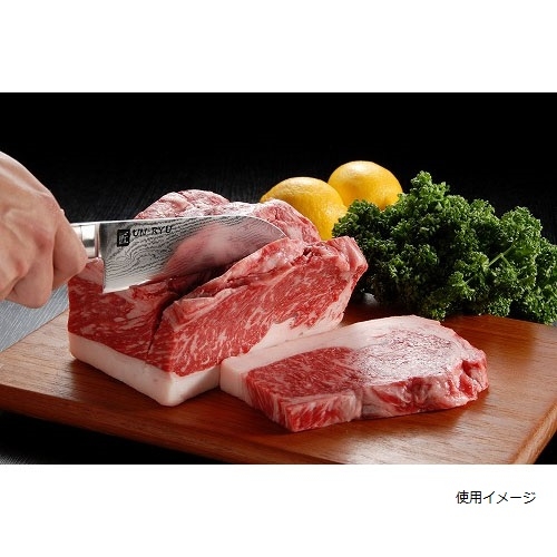 ●刀身=芯材:Vg10、側金:ダマスカス33層鋼、ハンドル:積層強化木●全長30.5㎝、刃渡り16.8cm、刃幅4.3cm●148g●日本製