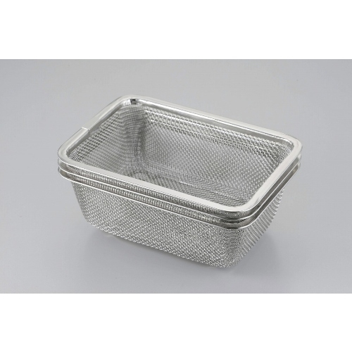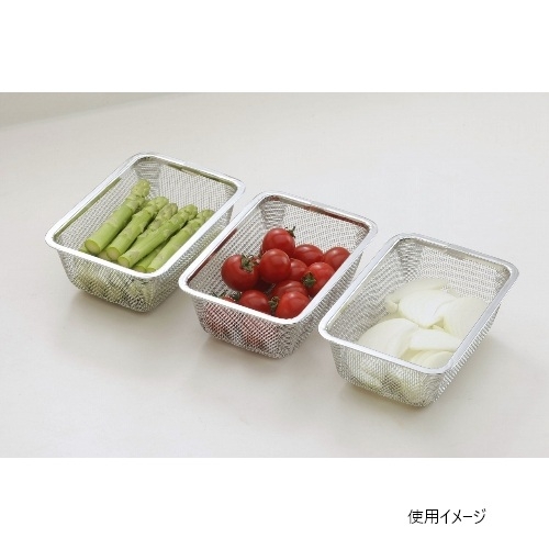 ●18−8ステンレス(網線径0.4mm×14メッシュ)●幅15.7×奥行11×高さ5.8cm、内寸:幅14×奥行9.5×深さ5cm、3個交差重ね時高さ16.5cm、3個収納時高さ7.2cm●82g●日本製