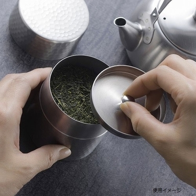 直射日光や室内照明などの光を防ぐ、遮光性の高いステンレス製の茶筒。新潟県燕市の職人の手による精巧なつくりで、密閉性も高く、茶葉の鮮度を保ちます。