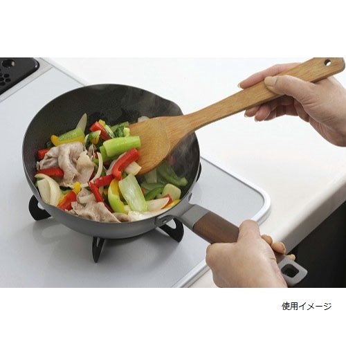 ●本体:鉄(底厚1.2mm、窒化処理)、取手:天然木(ブナ材、ウレタンクリア塗装)、取付金具:アルミダイキャスト、ハンドルネジ:鉄(ユニクロメッキ)、カシメビス:18−0ステンレス●幅38×奥行20.8×高さ12.5cm、内径19.8×深さ6.8cm●1.7L●640g●IH対応●日本製