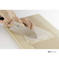 刃先は硬く切れ味抜群。側金は研ぎやすい素材です。芯材には高硬度のAUS10を使用。燕三条の職人が手作業で水本研ぎ仕上げを施し、お肉の繊維もスパッと切れる鋭い切れ味に。