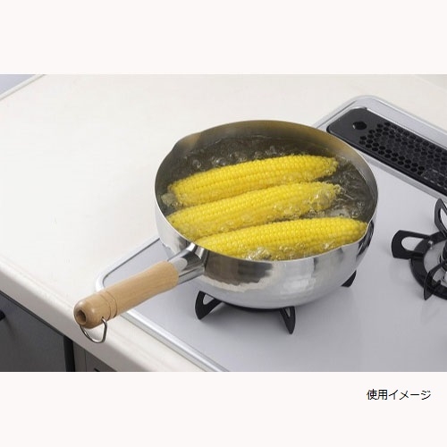 ●21−0ステンレス(底厚1mm)、ハンドル:天然木(ブナ材・クリアウレタン塗装)、ハンドルフック:18−8ステンレス●幅40×奥行25.3×高さ11.5cm、内径24×深さ8.5cm●3.5L●830g●IH対応●日本製