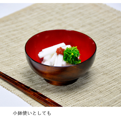 ●とち、漆塗装●径12×高5.5cm●85g●満水容量260ml●日本製※電子レンジ・食洗機・乾燥機使用不可。※漆は体調、体質によりごくまれにかぶれる場合があります。その際は直ちに使用を中止し、できるだけ早く医師の診断を受けてください。