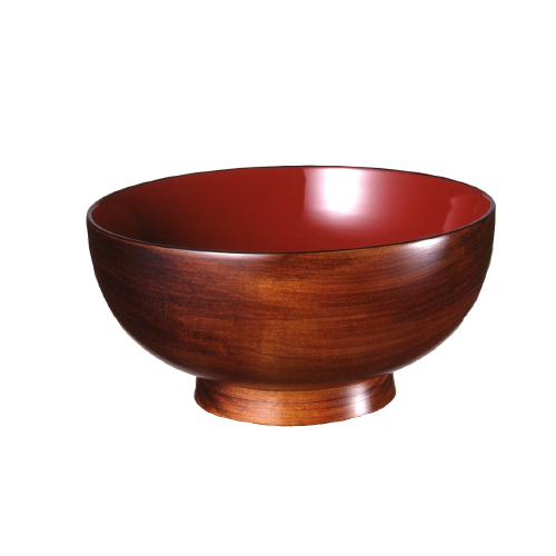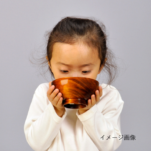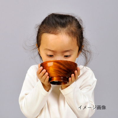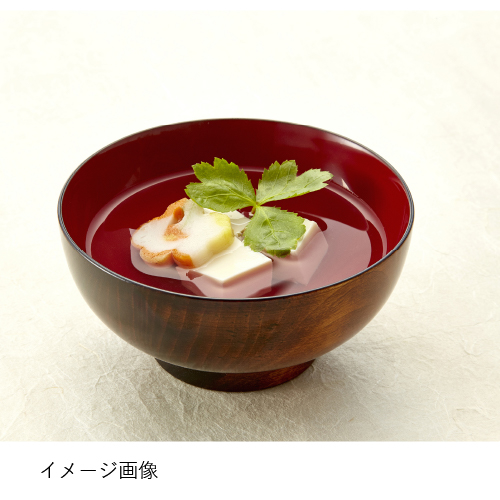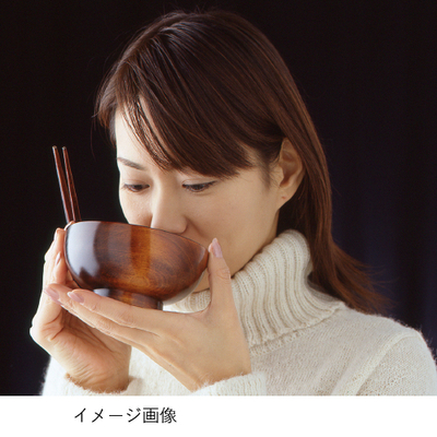 国産の「とち材」を使用し、内側は朱漆、外側は木目を生かした摺漆(すりうるし)で仕上げた手作りの汁椀です。熱い汁物を入れても外側は人肌に近い温度で、保温性の高いつくりになっています。