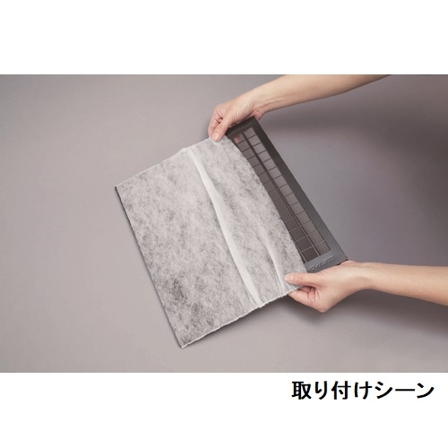 金属フィルター全体を覆う新タイプのレンジフードフィルター。だから表面と裏側をWでガード。厚手タイプでたっぷり油を吸着、空気の流れも損ねません。ピッタリフィットするのでキャップタイプのようなたわみもなく、貼り付けるタイプのように粘着テープからはがれおちることもありません。