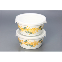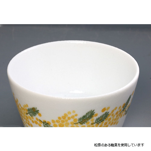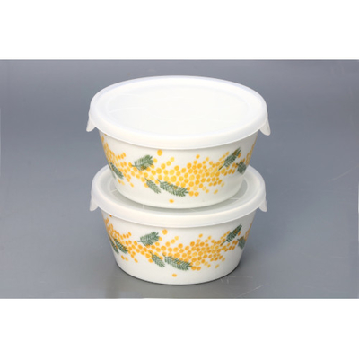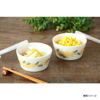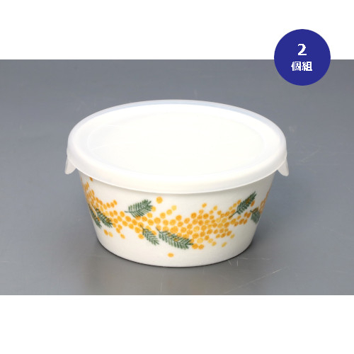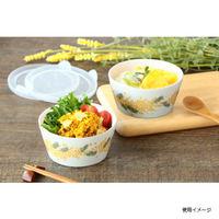 常備菜や漬物、少し余ったおかずなどを保存したい時に便利なパック鉢。側面にぐるりとミモザ柄が描かれ、そのまま食卓に出しても目を引くデザインです。電子レンジで温めもできます。
