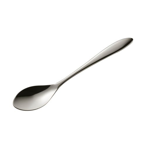 口からスッと抜けてスプーンに食べ物が残りにくい平らな形状です。女性や子供の口にラクラク入る小さめサイズ。