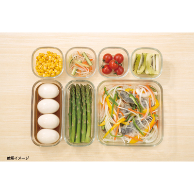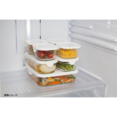 角型で冷蔵庫にすっきり収納。中身や保存状態がすぐにわかる耐熱ガラス製の保存容器。