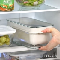 水抜きスリット付きぬか漬け容器。透明外容器に入っているので、ぬかの状態やどのくらい水分が出ているかすぐに確認する事ができます。発酵済みぬか床1kgを入れるのにちょうど良い大きさ。冷蔵庫にも入れやすいオシャレでシンプルなコンパクトデザイン。
