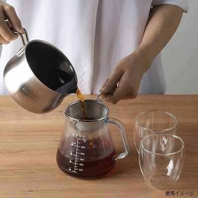 畳のように織った細かい金網が小さな茶葉もキャッチします。見た目も美しいお茶に仕上がるので、来客用のおもてなしにも。一度にたくさん漉せる大き目のサイズは、複数の茶葉や香辛料を使うチャイなどをつくるときにも。