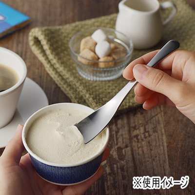 ヨーグルトやアイスクリーム容器の底まできれいにすくいやすい形状のスプーンです。幅がスリムで、お年寄りやお子様にも使いやすい。