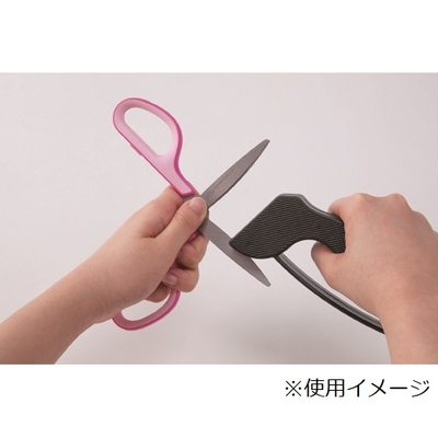 切れ味が悪くなったハサミ・包丁等に。刃に沿って数回スライドするだけ!握りやすいグリップ設計で使いやすさ◎ 安全バー付き