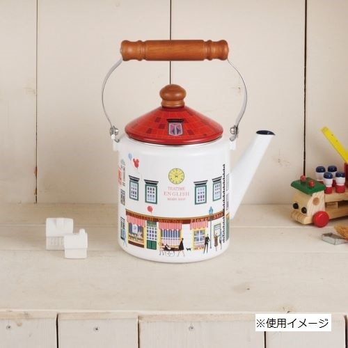 かわいいショップ柄のホーロー製ケトル