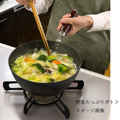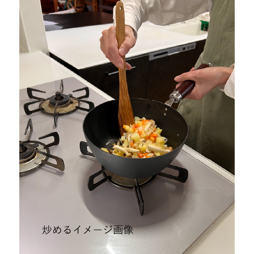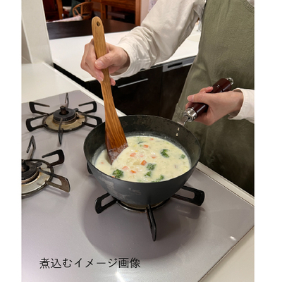 ●冷間圧延磨き鋼板(窒化鉄)、ハンドル:ブナ(ウレタン塗装)●鍋:直径20.3×深8.5cm、全長37.5×高13.5cm、底径11cm●板厚1.6mm●680g●満水容量/2.1L●IH対応(100V・200V)●日本製※食洗機・乾燥機使用不可。