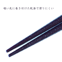 丈夫で長く使える材質や形状にこだわった箸。仕上げに塗ったMR漆も耐久性に優れています。丈喰い先に乾漆を巻き付け滑り難い作りになっています。