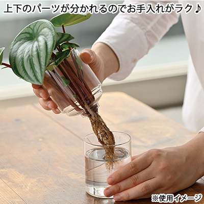 花器としてだけでなく、水耕栽培も楽しめます。透明感があり美しいガラスでできた花器はどんな花にも合い、部屋に置くだけで空間を素敵に演出してくれます。上下のパーツが分かれるので、お手入れも簡単。素材が耐熱ガラス製なので、熱湯消毒もできます。調理前のハーブを入れてキッチンに置く使い方もおすすめです。
