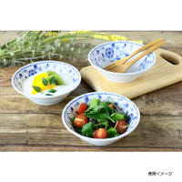 白磁にブルーの花柄が映える上品な器。スープやフルーツ、取皿としても。