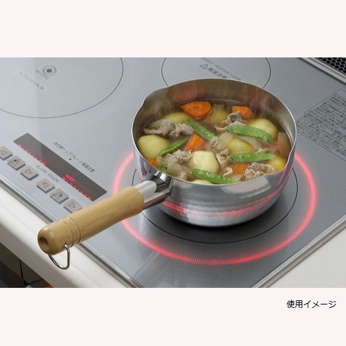 ●21−0ステンレス(底厚1mm)、ハンドル:天然木(ブナ材・クリアウレタン塗装)、ハンドルフック:18−8ステンレス●幅34.2×奥行19.4×高さ11.2cm、内径17.8×深さ8.5cm●1.9L●570g●IH対応●日本製 ※業務用ではありません。