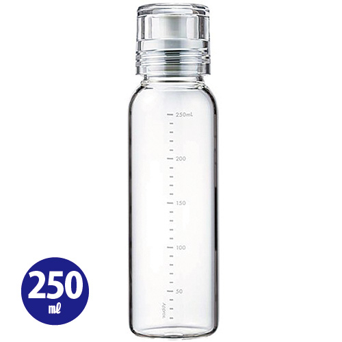 ●本体:耐熱ガラス(耐熱温度差:120℃)、フタ:PCT樹脂、パッキン付き注ぎ口:シリコーンゴム●径5.5×高20.3cm、口径3.7cm●234g●実用容量:250ml●耐熱温度:フタ/110℃、パッキン付き注ぎ口/180℃●本体:中国製、フタ・注ぎ口:日本製
