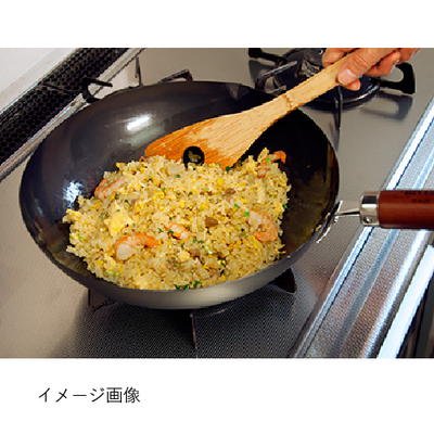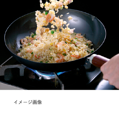 大人数の炒め物や、炒飯を作るときに便利。熱をしっかり蓄え、食材に熱をたっぷり伝えるので、炒め物はシャキッと、焼き物は香ばしく仕上がります。表面には窒化加工を施すことで耐久性に優れています。
