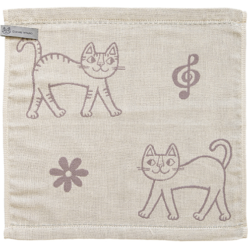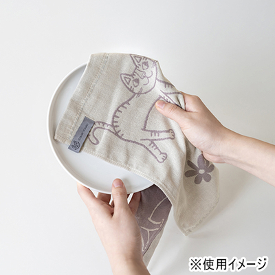 ねこのイラストを二重ガーゼのジャガード織りで表現したふきんです。Ag+(銀イオン)を糸に練りこんでいるので、雑菌の増殖を抑え、いやなにおいがしにくいです。乾きが早く、やわらかで手になじみます。