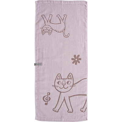 ねこのイラストを二重ガーゼのジャガード織りで表現したキッチンタオルです。Ag+(銀イオン)を糸に練りこんでいるので、雑菌の増殖を抑え、いやなにおいがしにくいです。乾きが早く、やわらかで手になじみます。食器ふきだけでなく、お手拭き用としても。