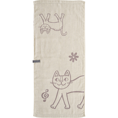 ねこのイラストを二重ガーゼのジャガード織りで表現したキッチンタオルです。Ag+(銀イオン)を糸に練りこんでいるので、雑菌の増殖を抑え、いやなにおいがしにくいです。乾きが早く、やわらかで手になじみます。食器ふきだけでなく、お手拭き用としても。