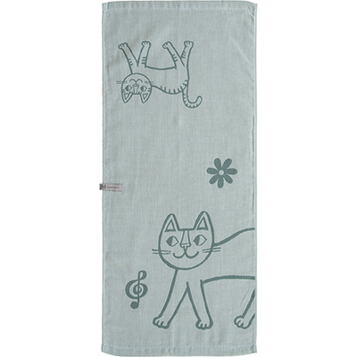 ねこのイラストを二重ガーゼのジャガード織りで表現したキッチンタオルです。Ag+(銀イオン)を糸に練りこんでいるので、雑菌の増殖を抑え、いやなにおいがしにくいです。乾きが早く、やわらかで手になじみます。食器ふきだけでなく、お手拭き用としても。