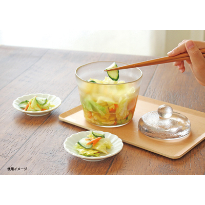 食卓においても映える一夜漬け器です。器も重石も、ガラス製なので、色やにおいが移りにくい。