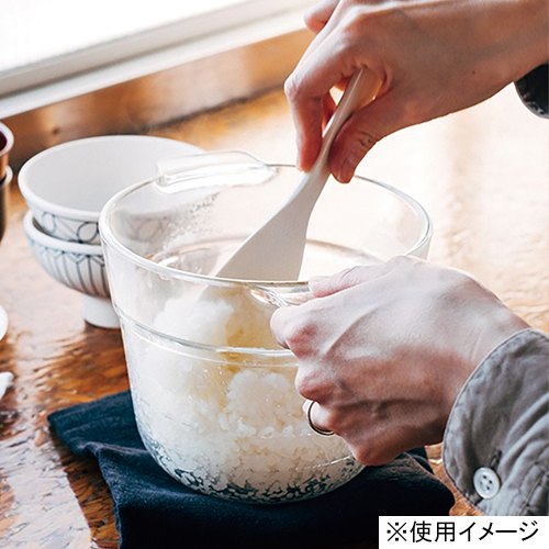 ●本体・フタ:耐熱ガラス(耐熱温度差120℃)、消音リング:シリコーンゴム●幅20×奥行16×高さ14.5cm、口径:15cm●耐熱温度:消音リング180℃●容量:0.5〜1合用●1,144g●本体・フタ:日本製、消音リング:ベトナム製※直火・オーブン使用不可。500w/600wで使用ください。