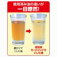 油を繰り返し使いやすいように、活性炭で微細な汚れもニオイも吸着してろ過します。カートリッジ式オイルポットなど専用の本体をお持ちで無いと使うことができません。それら本体の付属カートリッジの交換用になります。